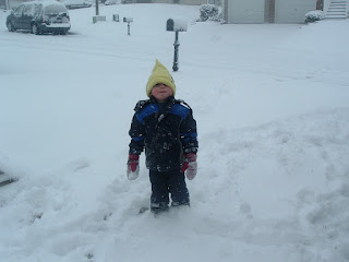It isn't that often that we get snow in our area; not uncommon, but certainly not a weekly event. Last night it started snowing and it didn't stop until this afternoon. Of course, the kids went nuts and were beside themselves with excitement. After a yummy breakfast of pancakes (thanks Tyler), the kids couldn't stand to wait any longer. We got all bundled up and went out to play. Soon after Jerry went out, he came back in screaming. He learned pretty quick that making snowballs without mittens starts to hurt.